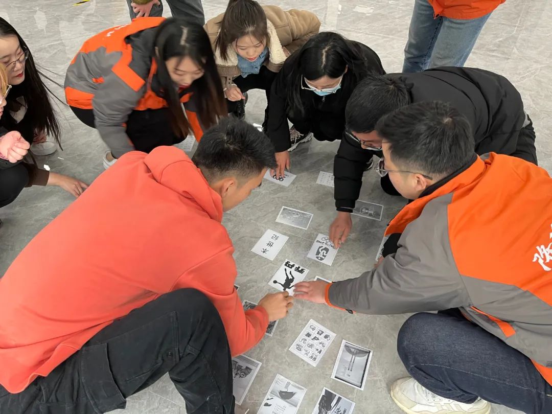 将地上的卡片记住后,组员相互沟通排列出正确的顺序且时间最短的获胜。